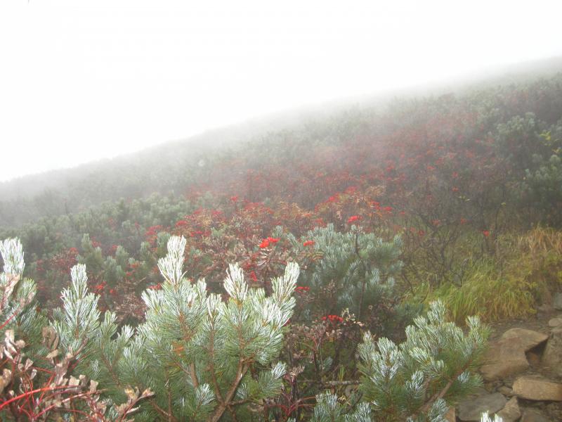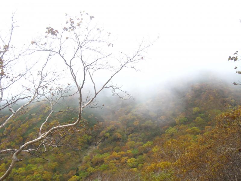 どんより曇り空、霧がかかりガスが出て・・・それでも雨がザーザーという訳ではなく、登る登る。