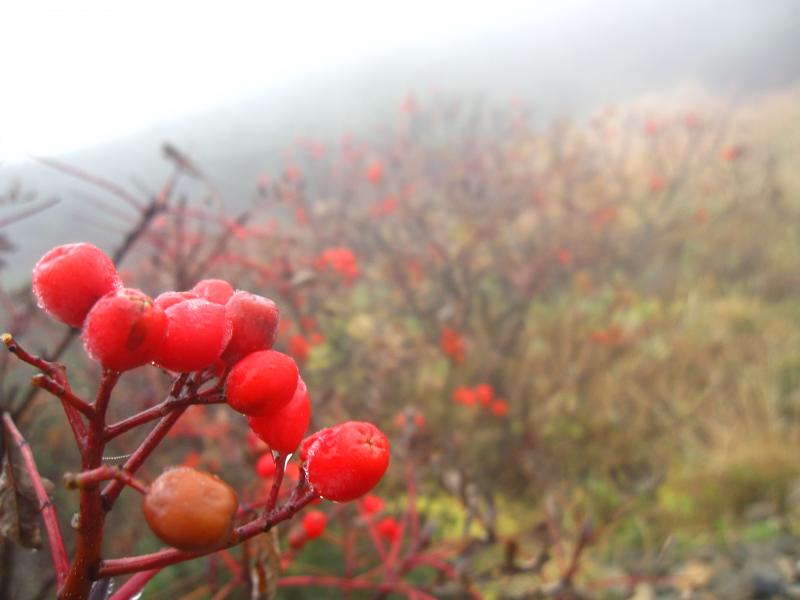 紅葉は全体的にみると黄色が多かったです。馬の背コースに入ってからはナナカマドの赤色も目立っていました。
