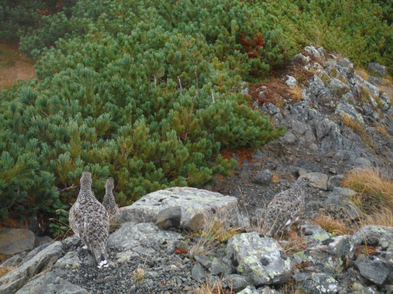 2日目は晴れのち土砂降り。千枚岳は強風でした。秋の風は冷たいので、薄手のウィンドブレイカーと手袋が大活躍です。途中の中岳避難小屋(有人)、荒川小屋、赤石岳避難小屋(有人)でトイレ休憩出来るので、長距離の行程でしたが安心でした。赤石岳に登る手前で雨が降り出し、赤石岳避難小屋に着く頃には土砂降り。その先の百聞洞山の家まで約2時間。この雨の中行こうかどうしようかかなり迷いましたが、赤石岳避難小屋に泊まると素泊まり料金がかかるし、翌日の行程の事も考えると出来る限り先に進んでおきたかったので、冬期無料開放されている百聞洞山の家まで無心でひたすら下を向いて歩きました。本来ならとてものどかで美しい百聞平に着くと、尋常じゃない嵐になって心が折れましたが、天気が悪くなるとすぐ会える雷鳥に6羽出会えたので良しとしました。雷鳥はかわいいです。