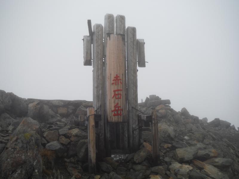 千枚小屋→(45分)→千枚岳→(45分)→丸山→(35分)→悪沢岳→(60分)→中岳避難小屋→(10分)→中岳→(55分)→荒川小屋→(80分)→赤石岳の肩→(50分)→赤石岳→(5分)→赤石避難小屋→(120分)→百聞洞山の家