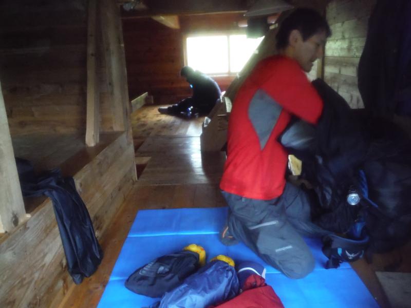 百聞洞山の家に15:30頃着くと、小屋には2人先客がいて水場など色々親切に教えて頂きました。水場は小屋の前にがんがん流れている沢ではなく、百聞洞下降点方面へ約7、8分程進んだところにある沢の水が安全だそうです。小屋は快適そのもの。前日は泊まる人が多かったようですが、この日は静かに過ごしました。