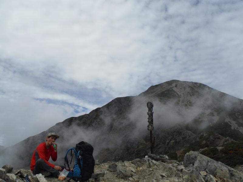 その日の宿は聖平小屋の冬期小屋。この小屋はとても大きく快適で、なおかつトイレが使えるのがとっても有難いです。水はすぐ横の沢で汲みました。この日は私たちの他に、テントも合わせると10人程いました。小屋の裏をぷらっと散策してみると、カボチャや大根、じゃがいもなどの野菜が大量に廃棄されていてちょっとショックでした。カボチャは動物がかじった跡があって、じゃがいもなんかはまだ食べられそうなとても美味しそうなものだったので、ガーンでした。