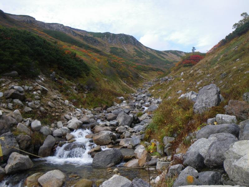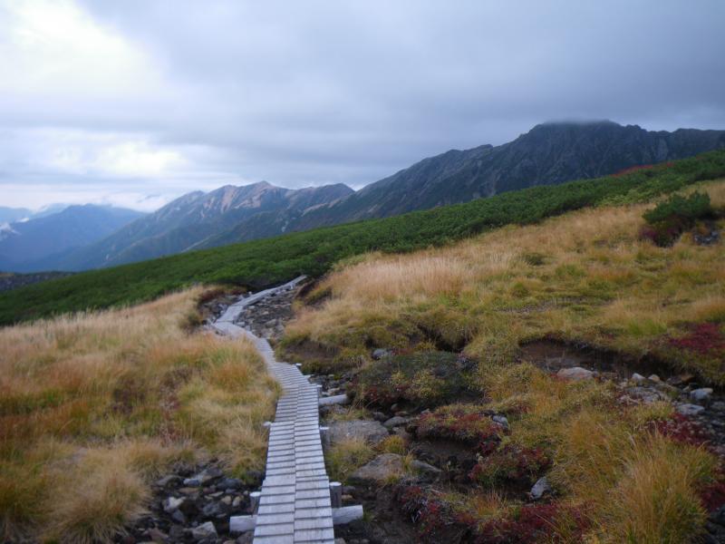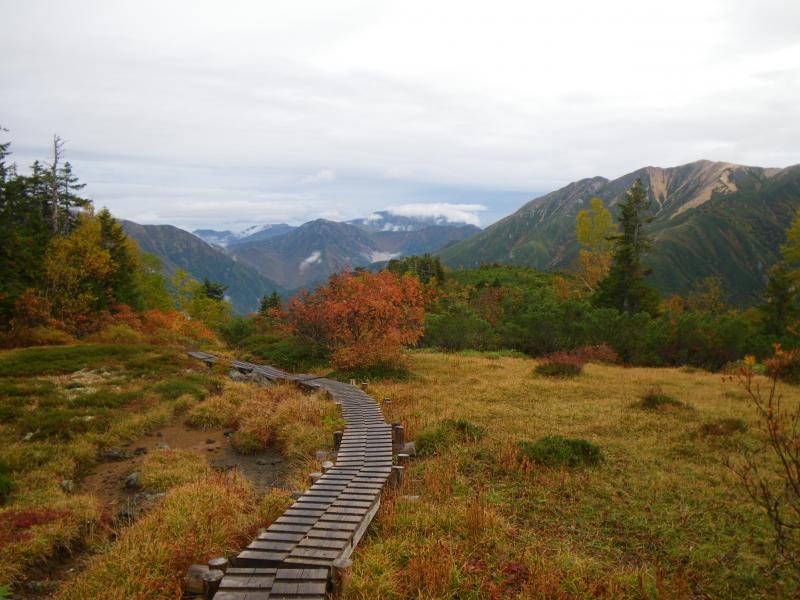 高天原方面の紅葉も今が見頃で湿原の草紅葉や水晶岳の山裾がきれいな感じでした。