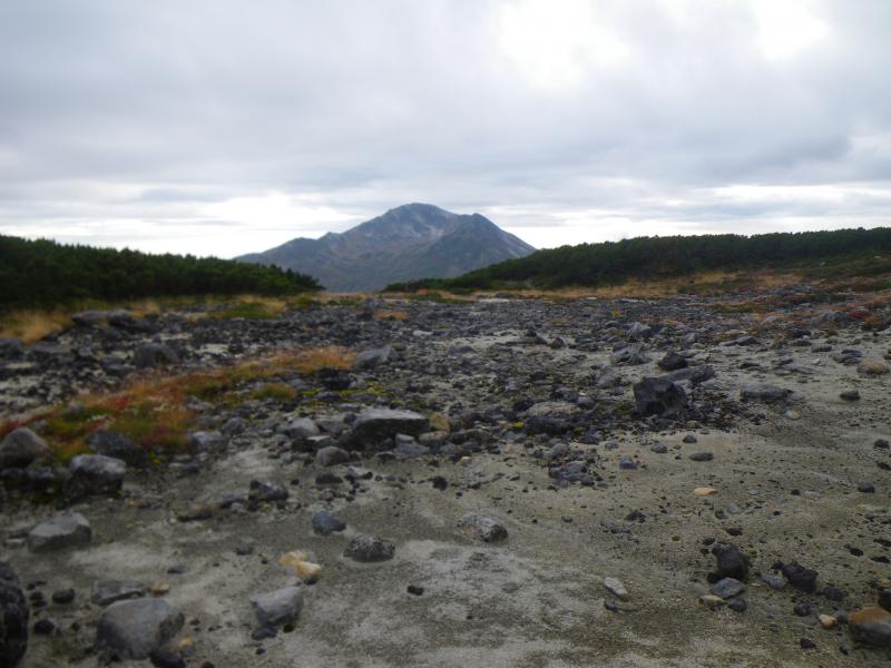 2日目、予想通り、厚い雲の中、なんとか行けそうなので高天原温泉へ向かいました。雲の平の一段下、奥スイス庭園手前あたりからは薬師岳がどんと見えるはずが雲で隠れ、今日は水晶方面は視界が効きました。
