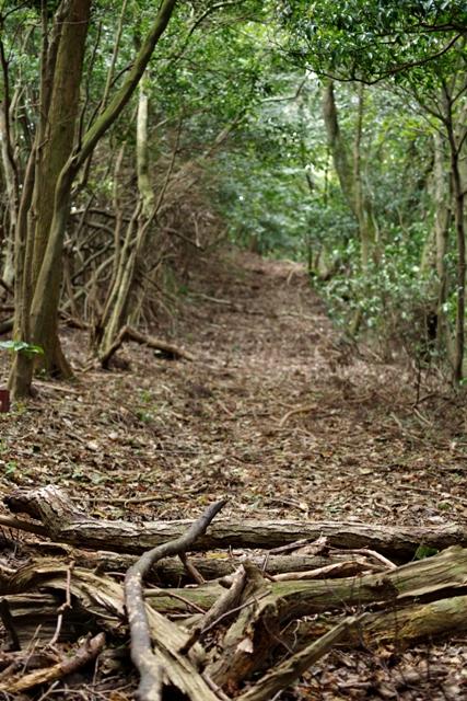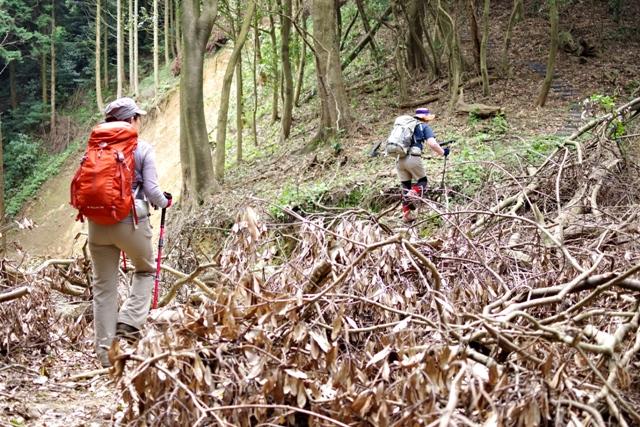 音滝山へは踏み跡がありますが、枝でルートではないという合図があります。