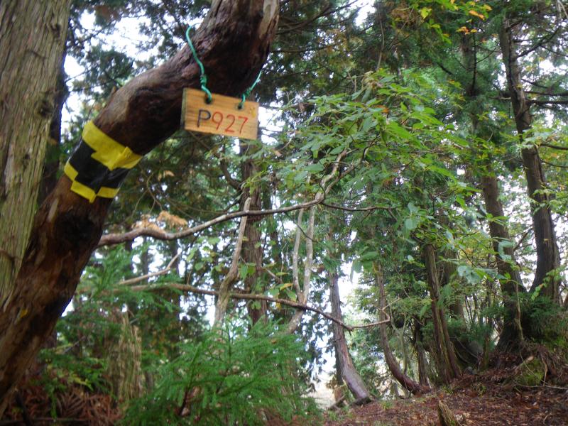 ④P927天狗岳分岐~小野村割岳間はやや尾根が広くなりますが、光砥山付近はマーキングがたくさんあり、方向注意