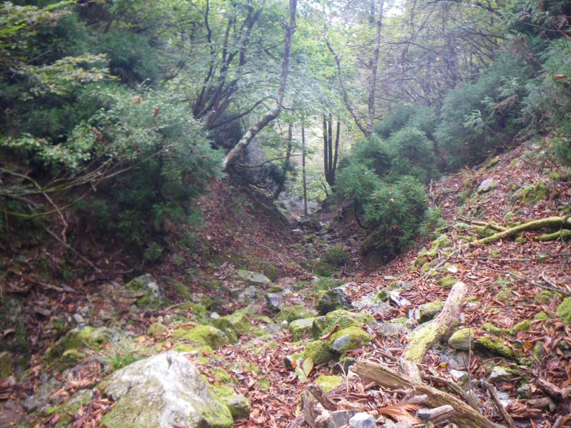 ⑧コウンド谷への下降は最初は急で、どこを降りるのかわかりにくいですが、とにかく沢に下降します