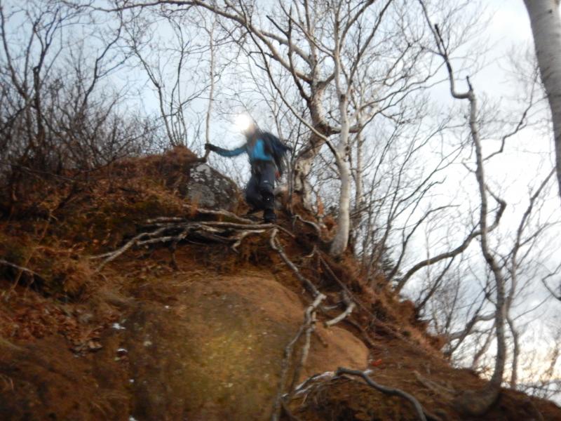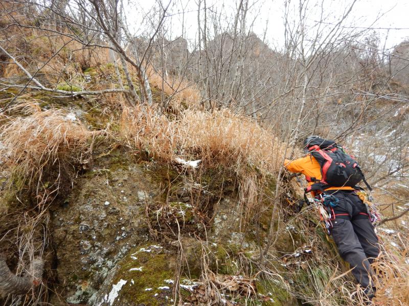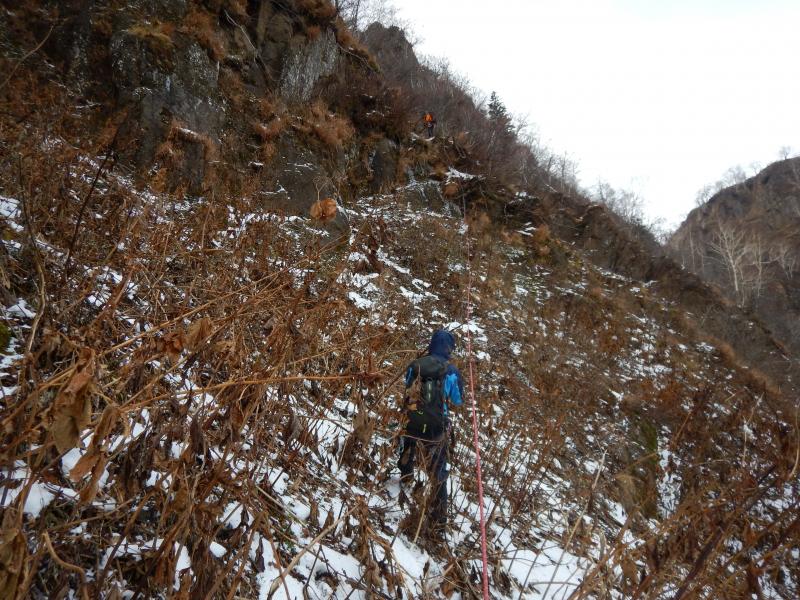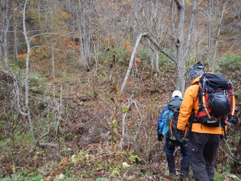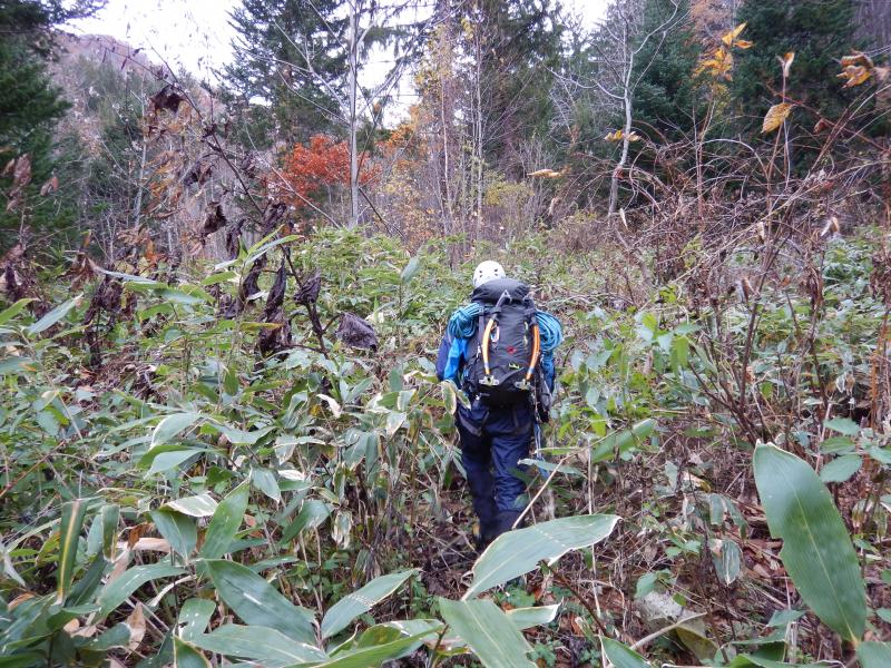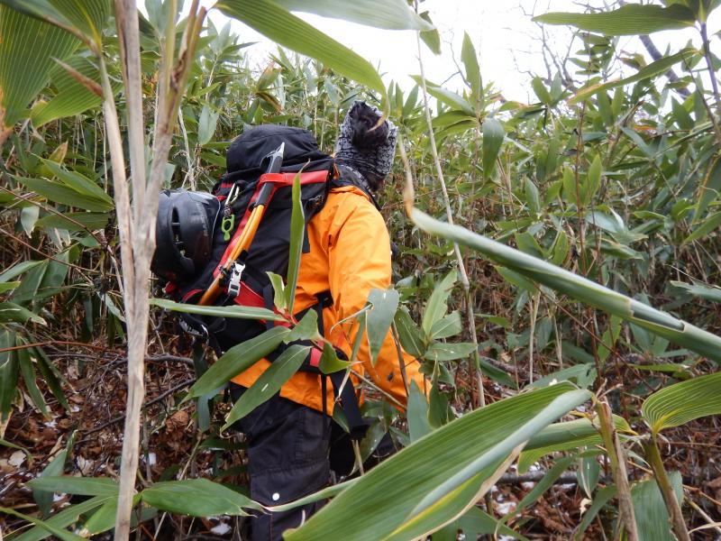 約3時間の長いアプローチ。まだ雪もないため、藪漕ぎ箇所がとても多いです。