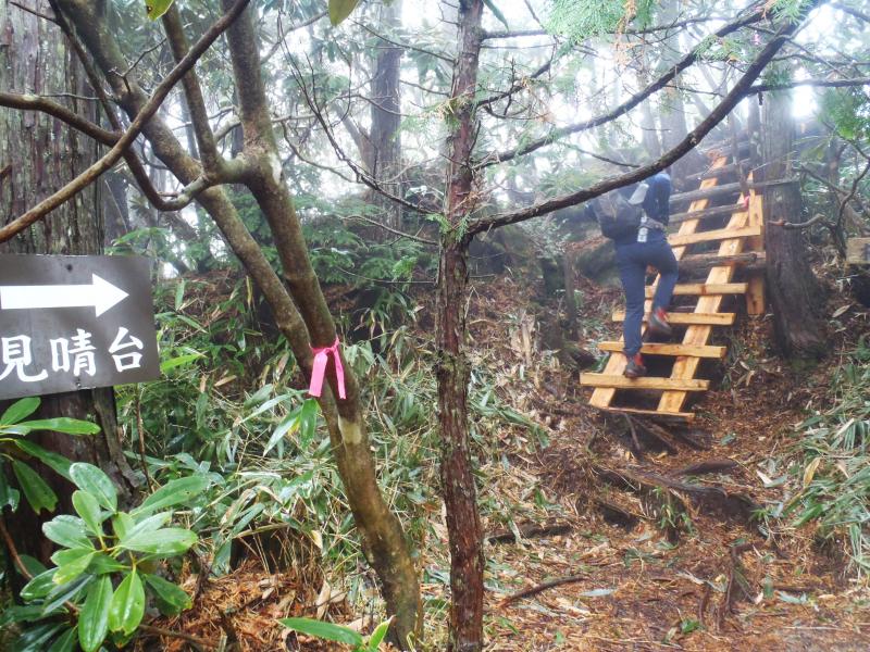 - 登山道は整備されているとはいえ、斜め向いた階段や急斜面は結構ハード。
