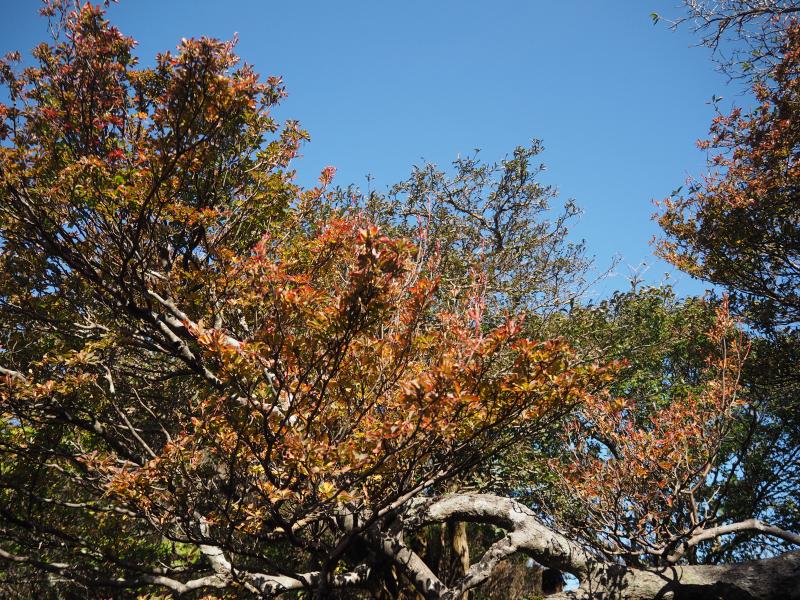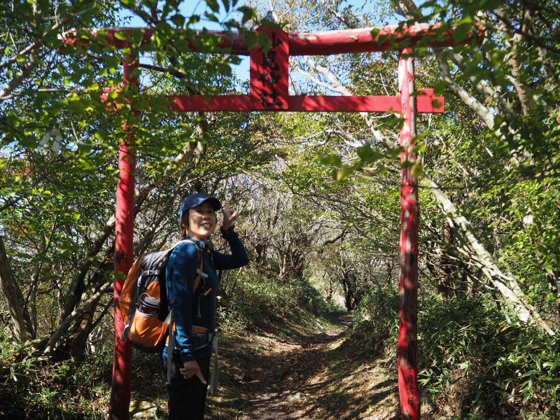 分岐までもどりいよいよ普賢岳へ。右に妙見岳、左に国見岳、正面に普賢岳の山肌を見ながらひたすら下る。山肌がまあまあ紅く染まっている。紅葉茶屋のベンチで一服したら最後の登りに取り掛かる。地味に登り続ける。すこし苔むす岩場なので気を付けて。普賢神社を右に曲がればひと登りで山頂に到着。きた!!普賢岳山頂だ!!山頂の奥に平成新山がどどーーーーんとそびえる。ここも展望は360度ばっちり。おまけに山頂が広いのでのんびり休憩できる。日差しもありあたたかく気持ちいい。もちろんランチのお供はカップラーメン。しばらく山頂を堪能し下山。紅葉茶屋を過ぎればあとは緩やかな登山道。テンポよく下りあっという間に仁田峠まで戻る。そうだ、紅葉は、、、んーーもう少しといったところか。