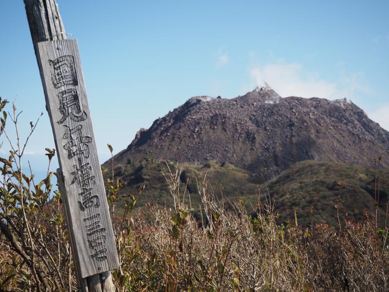 左に見える妙見神社の鳥居を抜けて国見岳を目指す。分岐を過ぎると岩場の急登が始まる。そうだった、そうだった、国見岳へは岩場が続き笹薮で足元が見えずどろどろになったんだった。だからゲイターを持ってきたのに結局付けてない、、、鎖の設置された岩場や段差の大きいすこし苦戦する登山道を10分ほど頑張れば国見岳に到着。360度の展望ばっちり!!妙見岳の展望台からみた形とはまた違った平成新山が見られる。ぐるっとまわってきたからね。