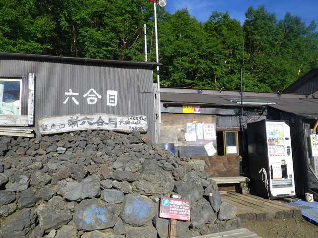 <上り>須走五合目(午前5:40発)新六合目長田山荘(7:00着)六合目瀬戸館(7:30着)七合目太陽館(8:30着)本七合目見晴館(9:20着)八合目下江戸屋(9:55着)本八合目上江戸屋(10:30着)八合五勺御来光館(10:50着)九合目(11:30着)須走ルート頂上(12:00着)=6時間半