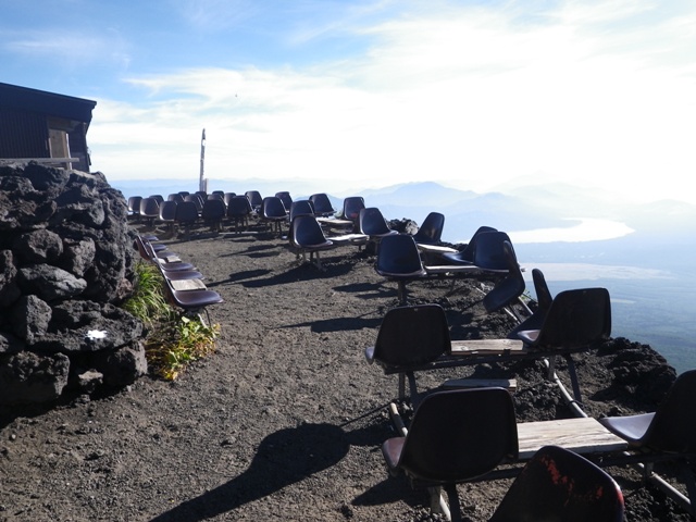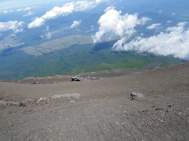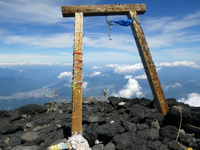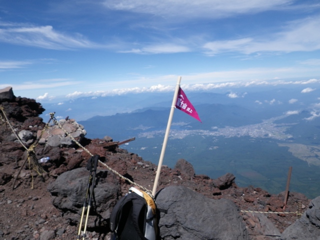 当日は天気がよくバツグンの展望が広がっていましたが、ガスで視界がなかったりしたときに登頂するというモチベーションがどこまで持つのか心配です。富士山は天気の良い日に登るに限りますね。