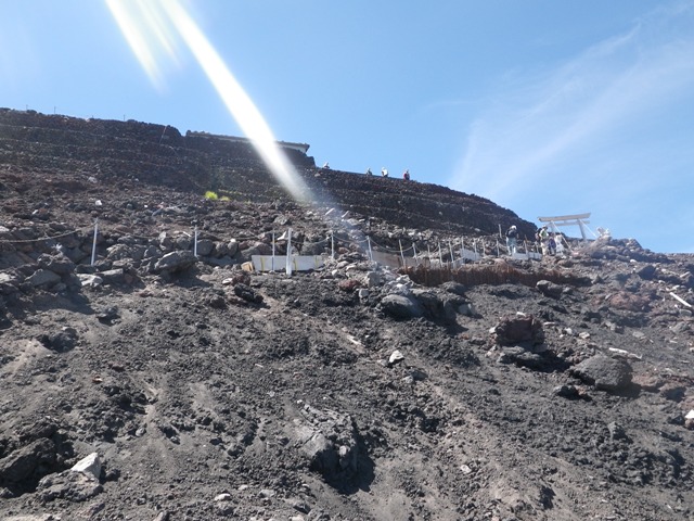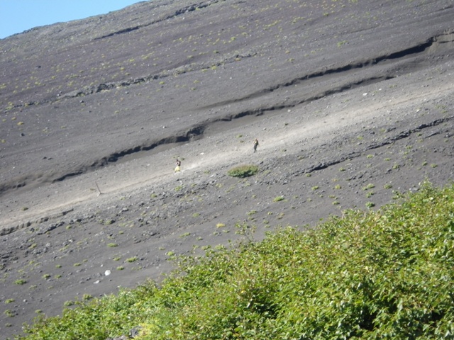 豪快といわれる砂走りですが、ヒザに不安があるものにとっては、制動をかけながら降りる必要があるのでかえって辛いかも!(砂走れず)
