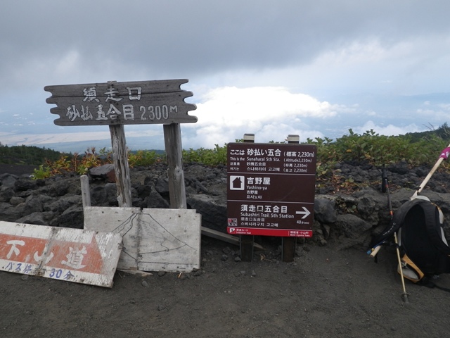 <下り>頂上(12:40発)八合江戸屋分岐(13:20着)-砂走経由ー砂払五合目(15:00着15:30発)五合目(16:10)=3時間半