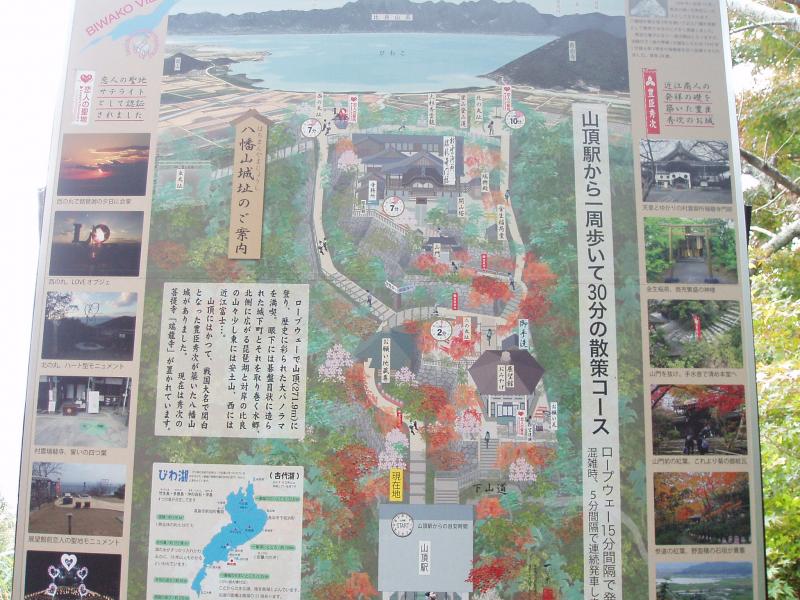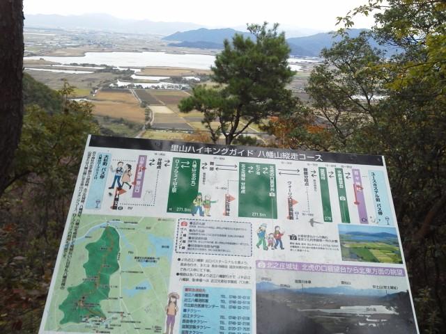 - 近江八幡観光駐車場<30分>八幡山城跡<20分>北之庄城跡<30分>八幡山北尾根登山口<25分>駐車場