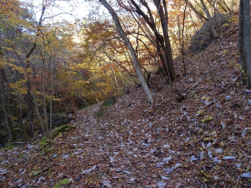 - 落ち葉が積もっているため、コースがはっきりしないとか滑りやすい場所があるなどはありますが、歩きやすいコースです。