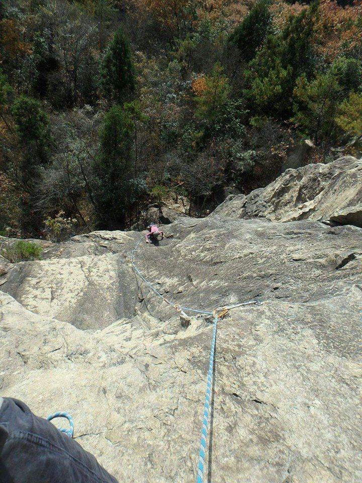 次は、「タイムトンネル」★★★ 5.10a 30M こちらは先生がトップでビレイ、回収。わりとすんなり。