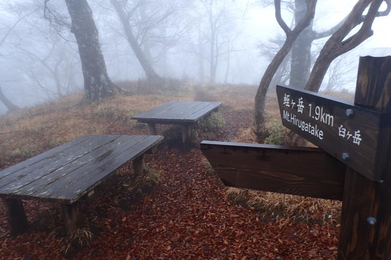 - 西丹沢自然教室(130分)檜洞丸(65分)臼ヶ岳(70分)蛭ヶ岳(75分)丹沢山(40分)塔ノ岳(120分)大倉バス停