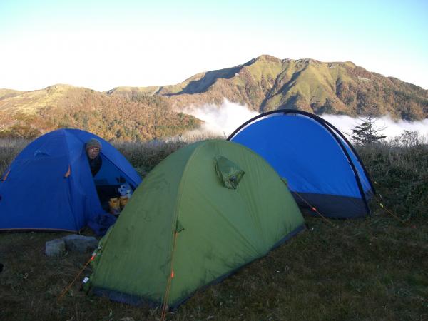 - 1日目 見ノ越ー(90分)-剣山ー(60分)-(次郎笈)-(90分)-丸石山ー(90分)高ノ瀬ー(120分)白髪避難小屋前テント場