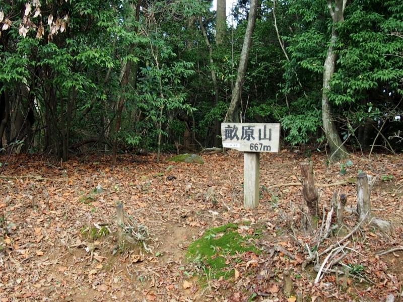 畝原山山頂は反射板横の林道にヒッソリと道標が佇み、ピーク感が殆どありません。