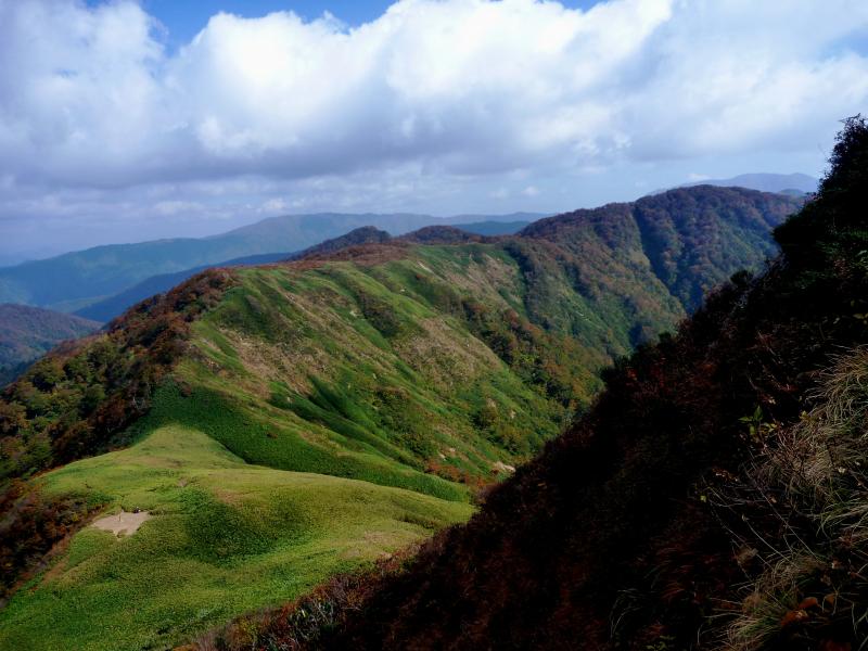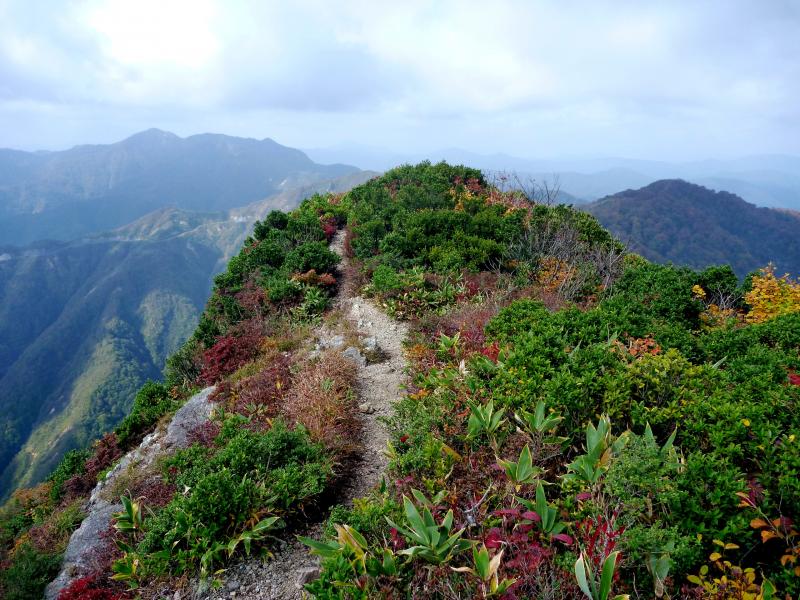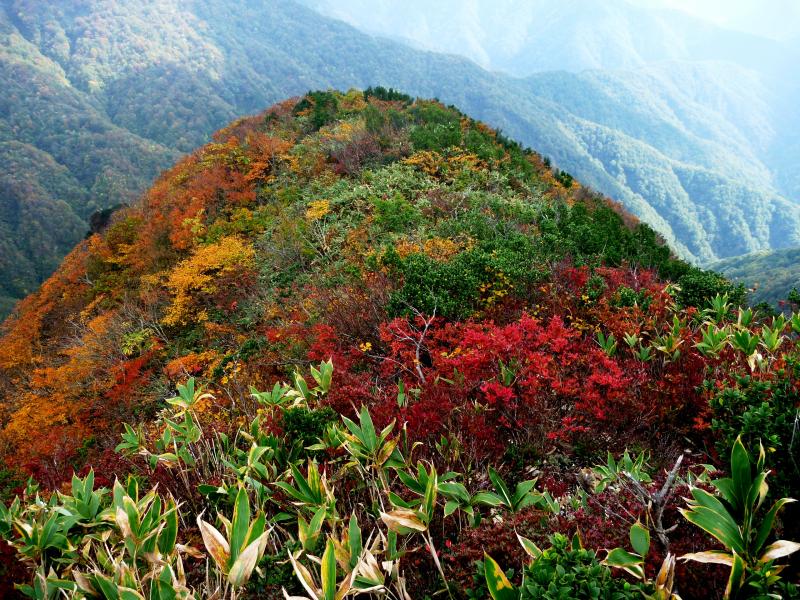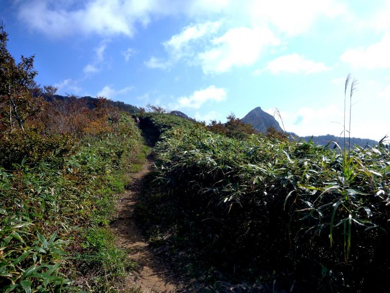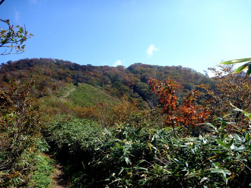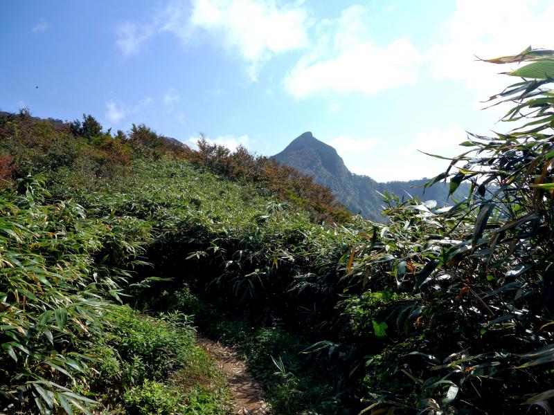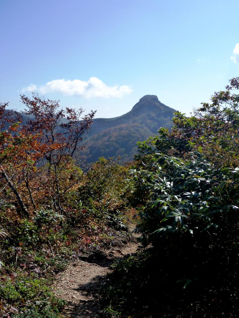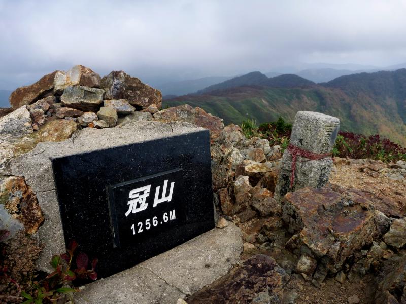 冠山峠から登ることができ、特徴的な形をした冠山の姿を