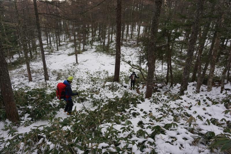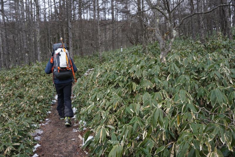 クマザサが生い茂った道を抜けると、樹林帯に入ります。