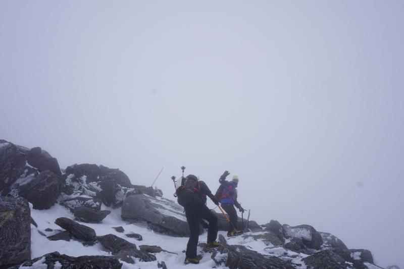 ストックをピッケルに持ち替えて慎重に歩きます。山頂まであと少し!