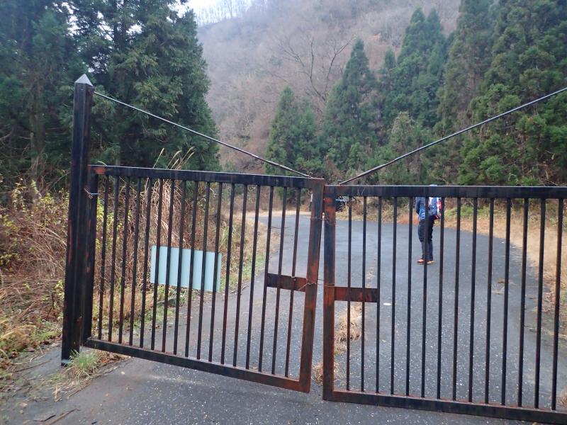 出発は、林道の車止めゲート。冬山あるある「登山口へのアプローチが長い」。約4kmの林道歩きです。