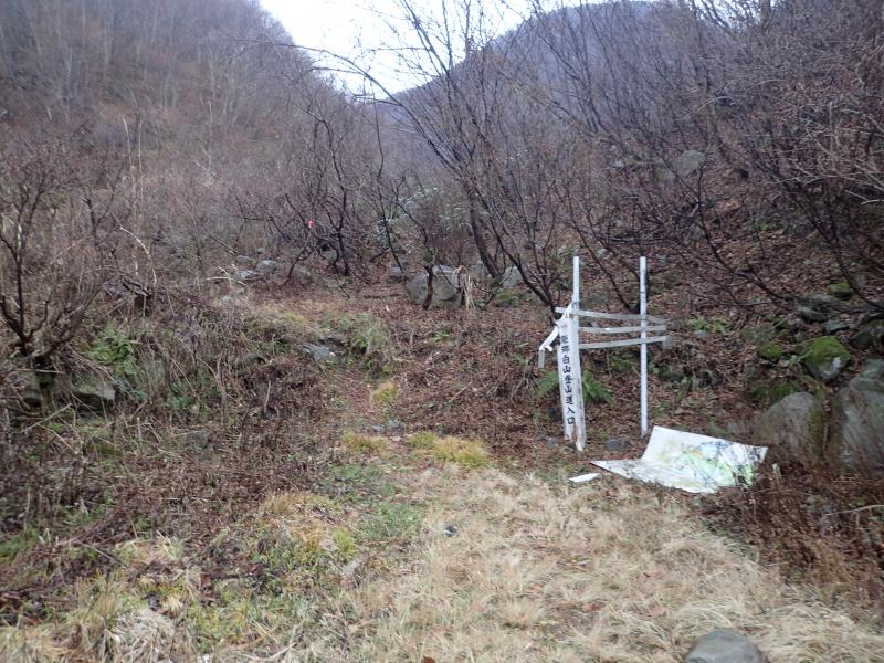能郷集落から林道に入ってすぐ、神社の電話ボックスの中で登山届を出す。