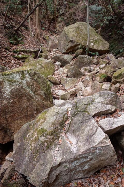 - 手足を使って登っていくルートです。地獄谷は落ち葉が多く、岩場はざれていて滑りやすいので慎重に。