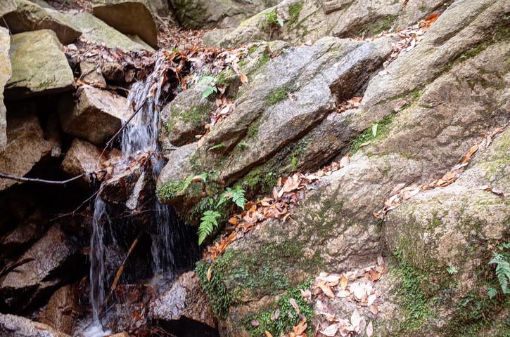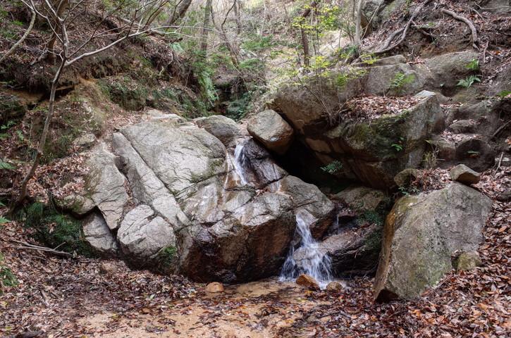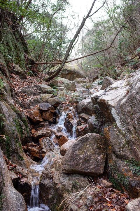 阪急芦屋川駅から地獄谷入り口の茶屋までは30分ほどでつきます。ロックガーデンに続く道を谷に降りると地獄谷の始まりです。地獄谷は小粒な滝が続く登りごたえのあるルートです。手足を使って登っていきますが、足元に落ち葉が多くいつもよりも慎重にのぼりました。堰堤が見えると地獄谷からはなれ、Bケン跡の岩場を登っていきます。ふみ跡がいくつもあるのでGPSがあると心強いです。