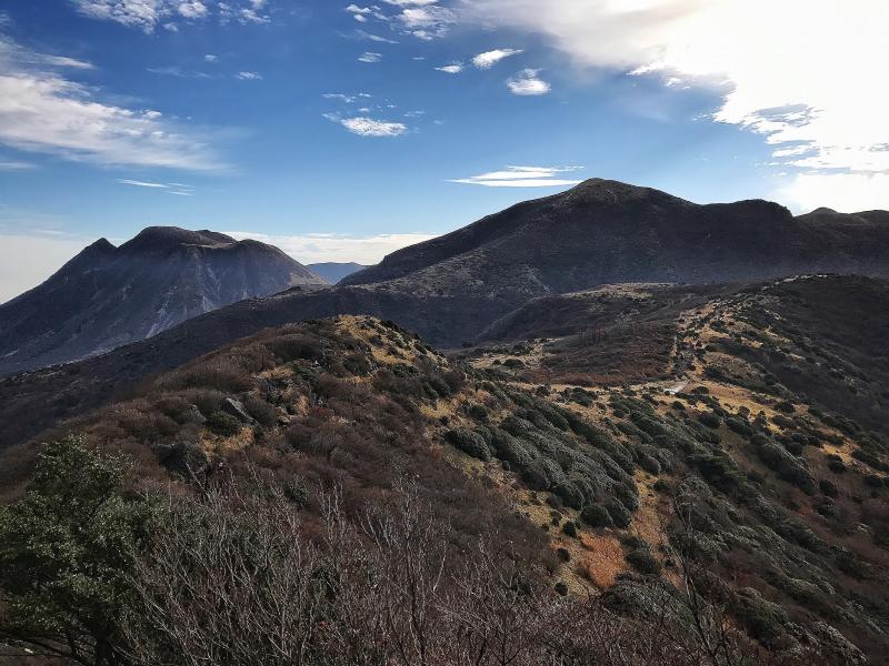 どちらも火山特有の景観で、擬似的に森林限界を超えて解放感がありますし、やはりくじゅうも独自の個性があっていい山ですね。案内する側としてはホッとしました(笑)