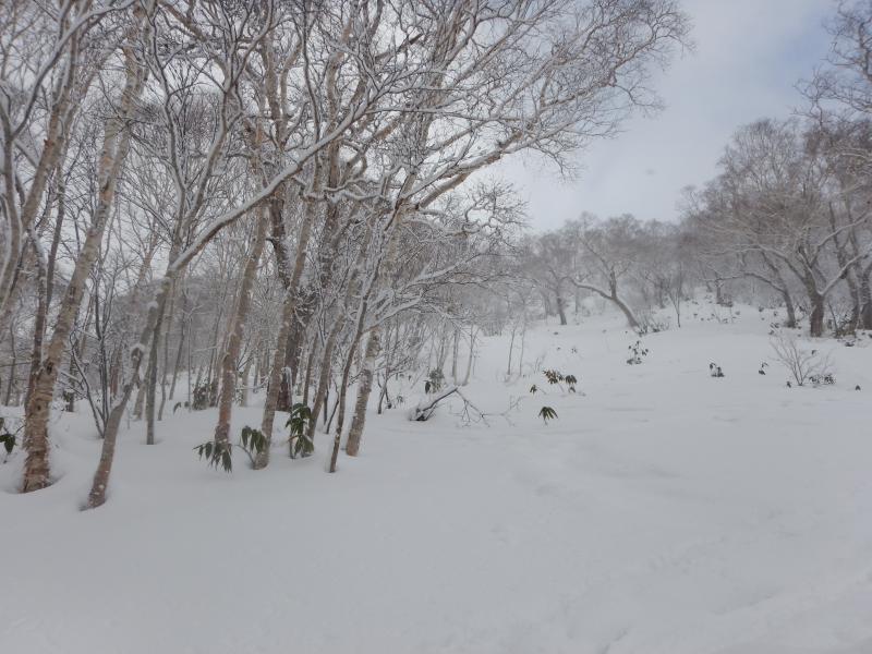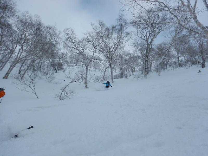 樹林帯の中は柔らかパウダー。