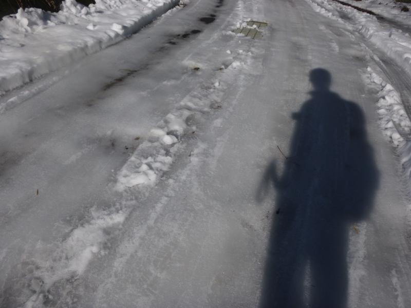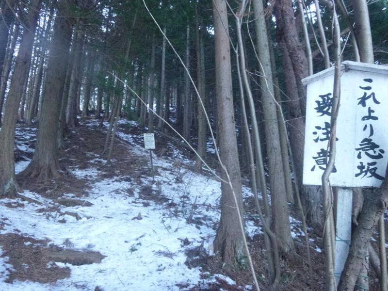6本爪の軽アイゼンとストックで登りました。上り下りともにトレースあり。分岐から天狗岩までの急坂は本当に急な傾斜で、日陰で雪が多くて軽アイゼンで何とかギリギリ登れました。前爪付きのアイゼンが欲しくなったくらいでした。山頂からの下りルートは、なだらかな杉山新道を選びました。