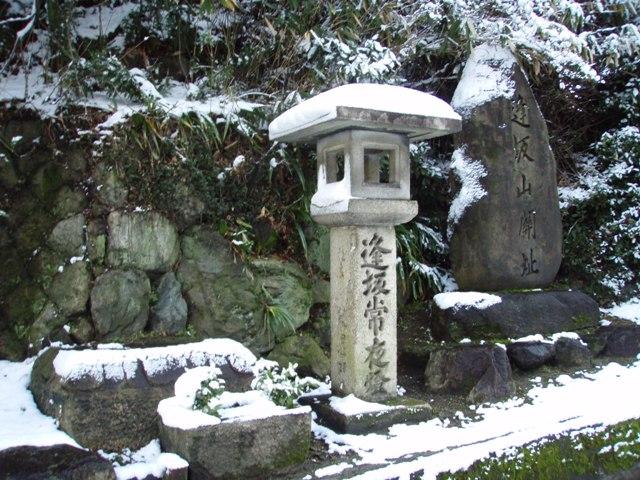 京阪・大谷駅から出発。すぐ近くに百人一首で有名な、東海道の要所「逢坂の関」があります。この辺り気温2度で積雪5cmぐらいでしたが、人の通った跡は溶けて薄くなっていました。