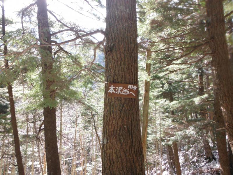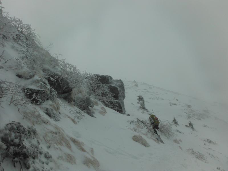 天気が悪く視界が悪かったため、本沢温泉に変えました こちら側は雪が少なく下草が見えていました