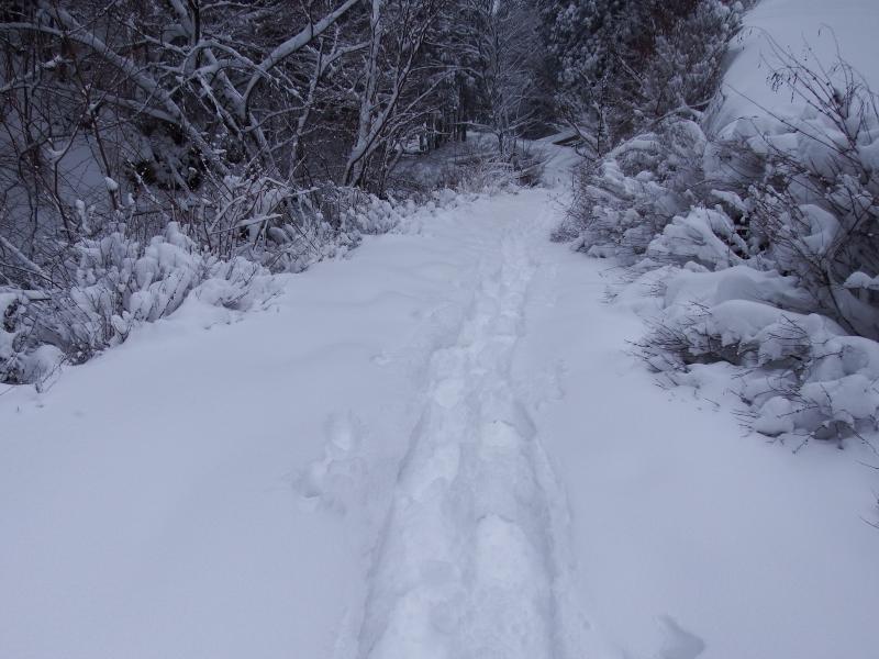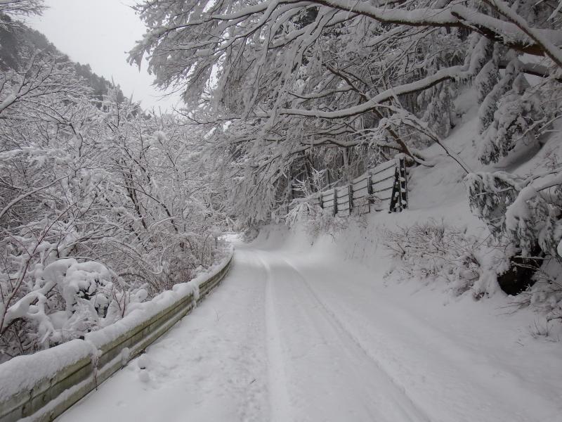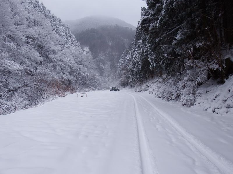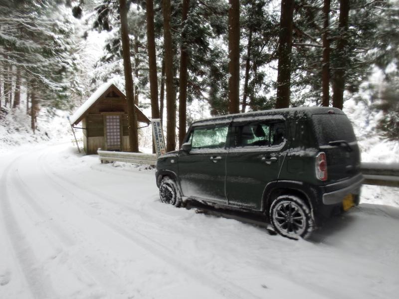 前日降った道路の雪が除雪されておらず、FF車・スタッドレスでは、大又林道を上がれなかった。