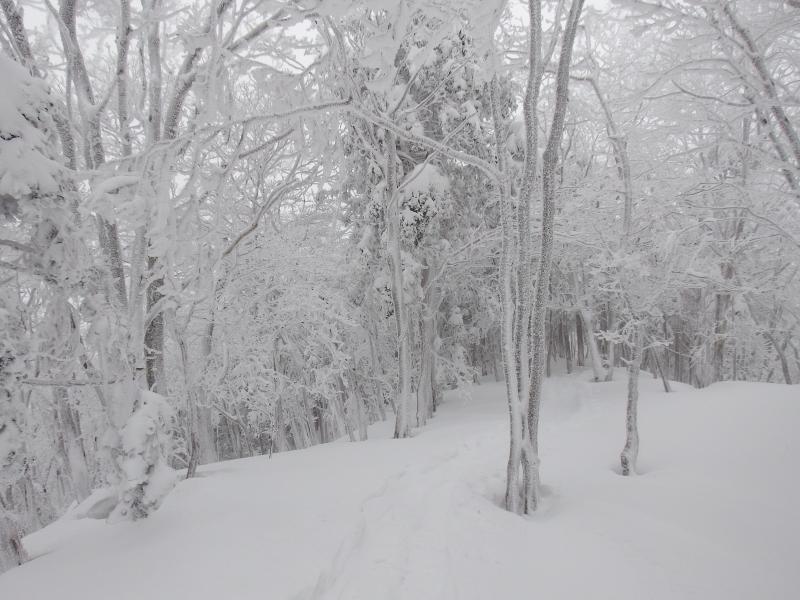 登山道は全くわからない状態で、先行の方のトレースをありがたく使わせてもらいます。