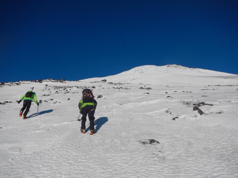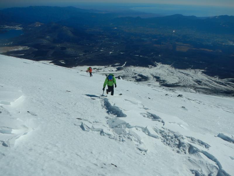 ところどころカチカチのアイス。とはいえアイゼンの歯も2,3ミリは刺さるので、ある程度経験のあるクライマーであれば恐れるほどでもないかと。あくまで風がない場合の話だが・・・。