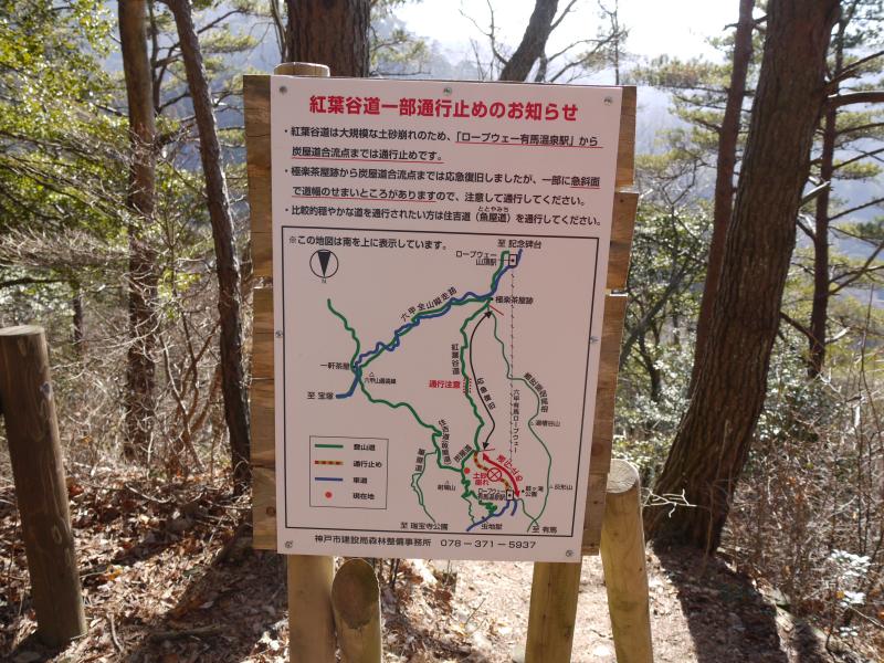 - ・有馬温泉側からの登山口六甲有馬ロープウエイ「有馬温泉駅」から炭屋道分岐までは現在通行止めです
