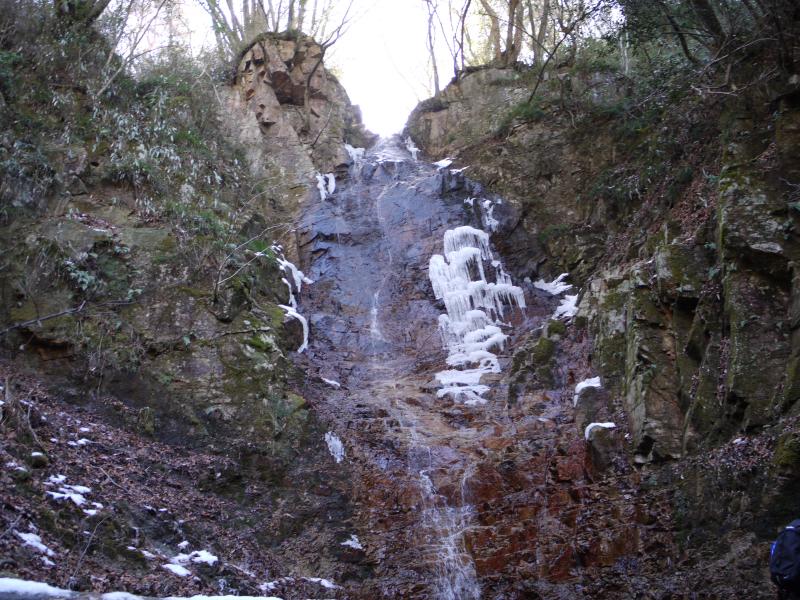 ・前日までは気温が低かったのですが、この日は良く晴れて暖かったためか滝の氷柱が目の前で崩れたりし、あまりいいコンディションではなかったようです。例年2月上旬にはもっと氷結するはずですので今後に期待します。