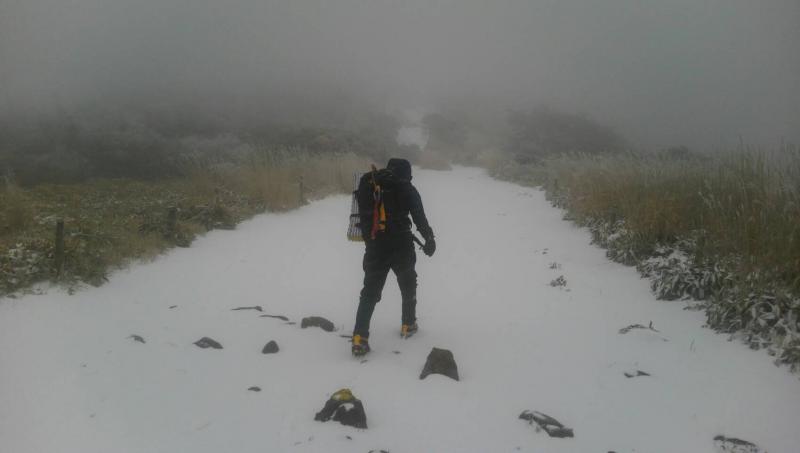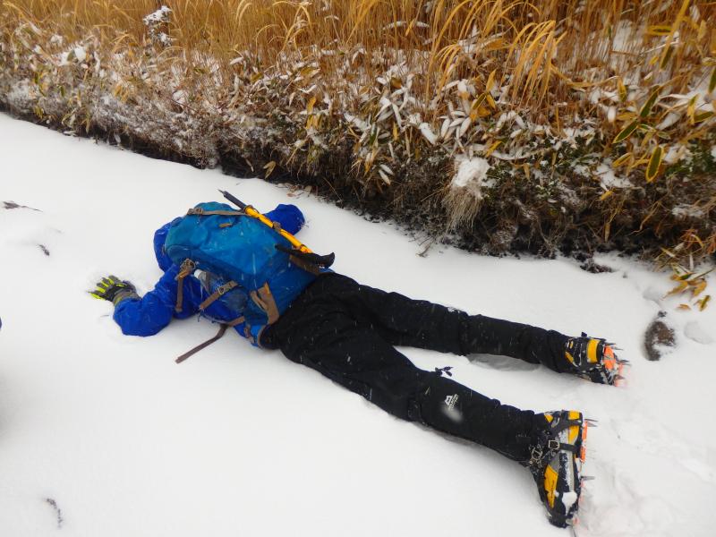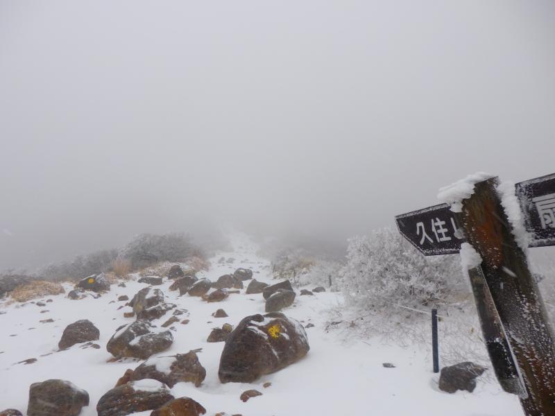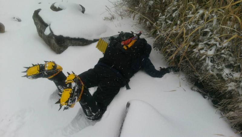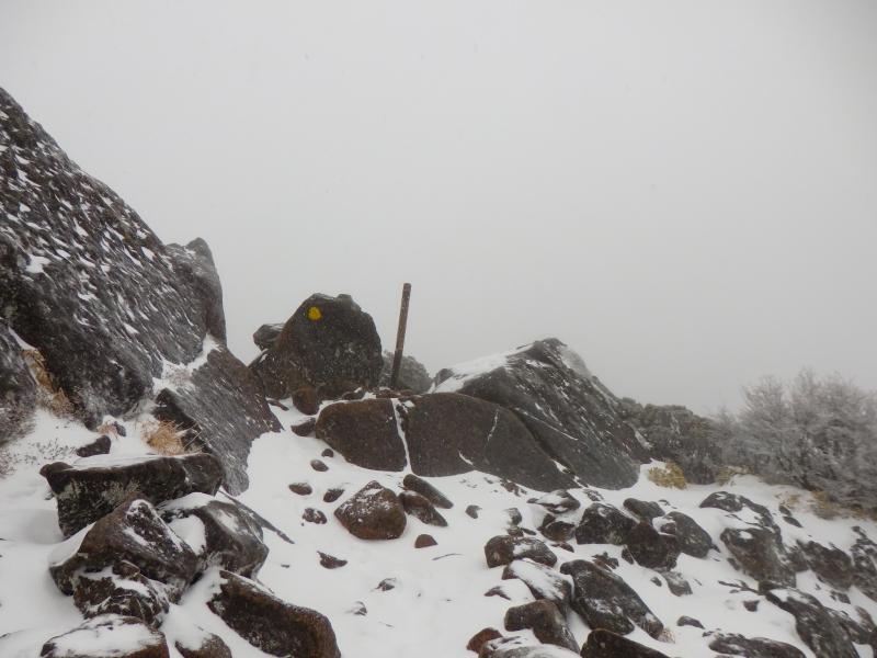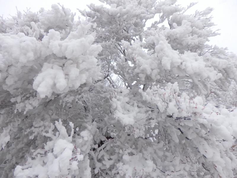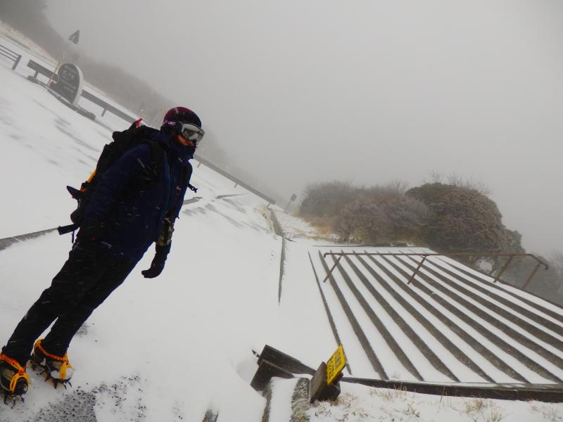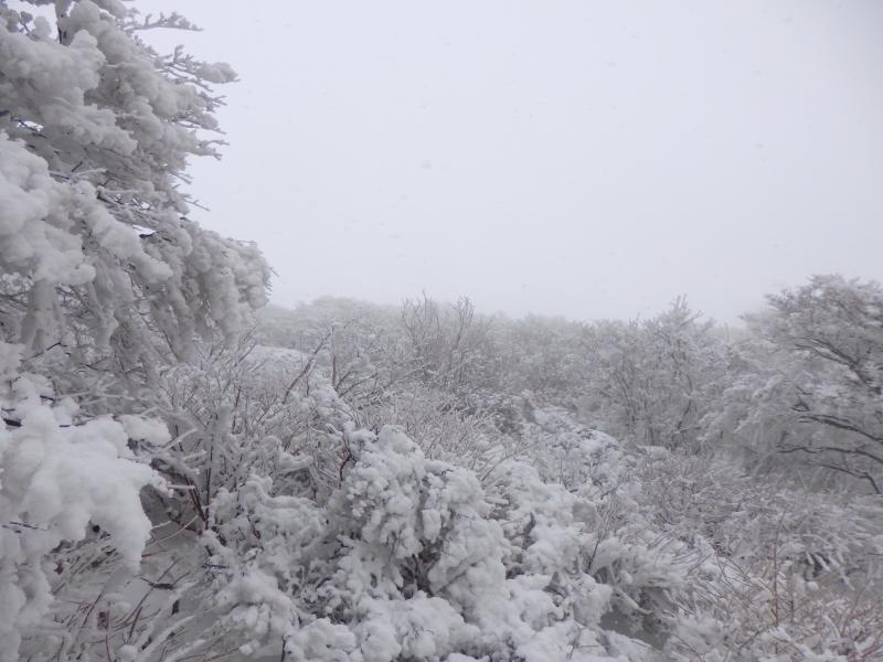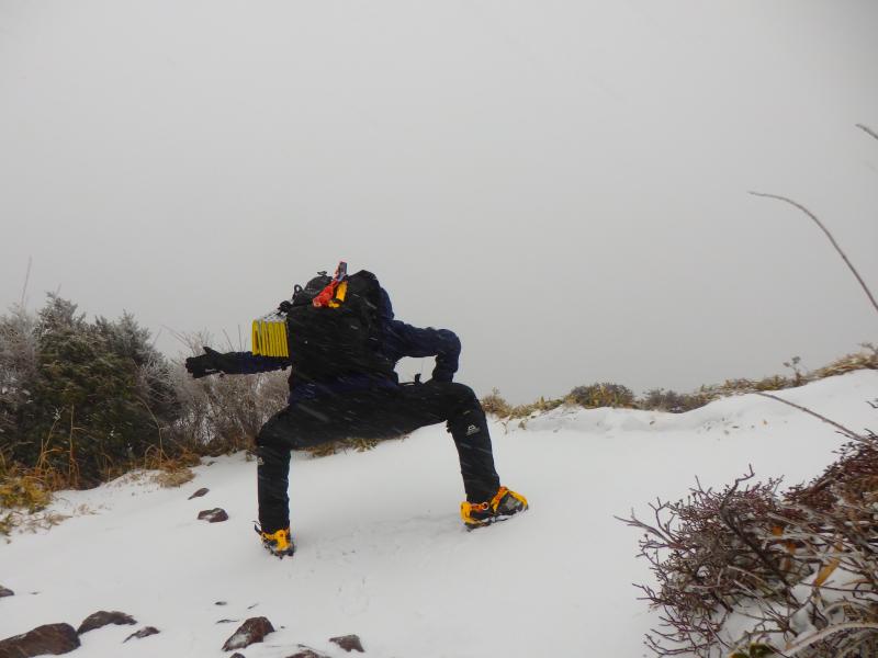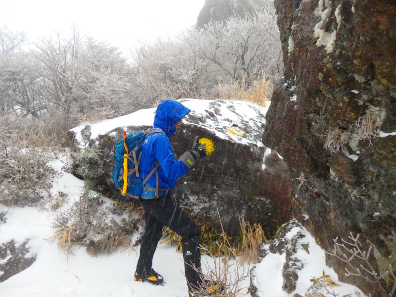 - 登山道は明瞭ですが、この日は寒波到来の為かなり地吹雪が激しかったです。