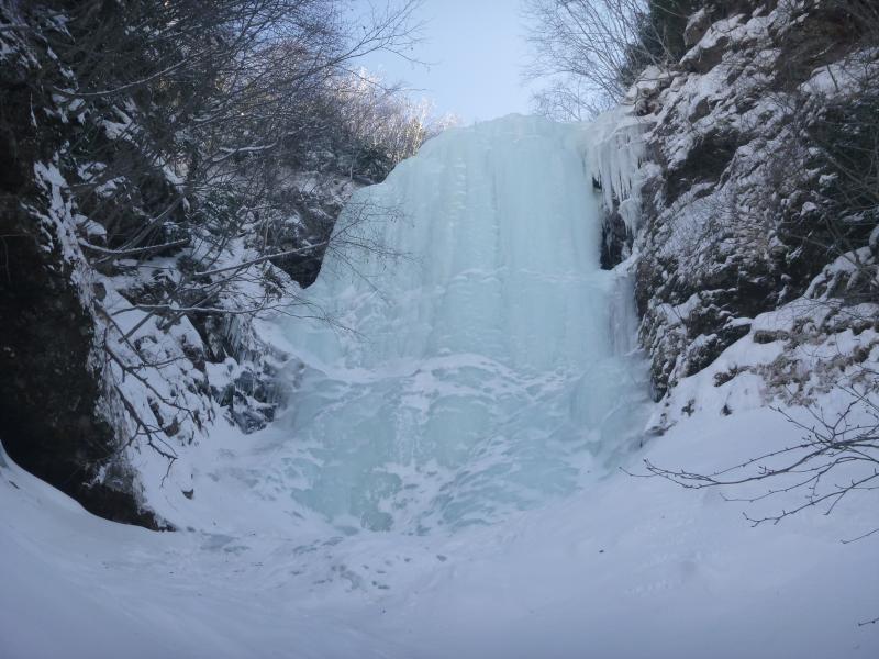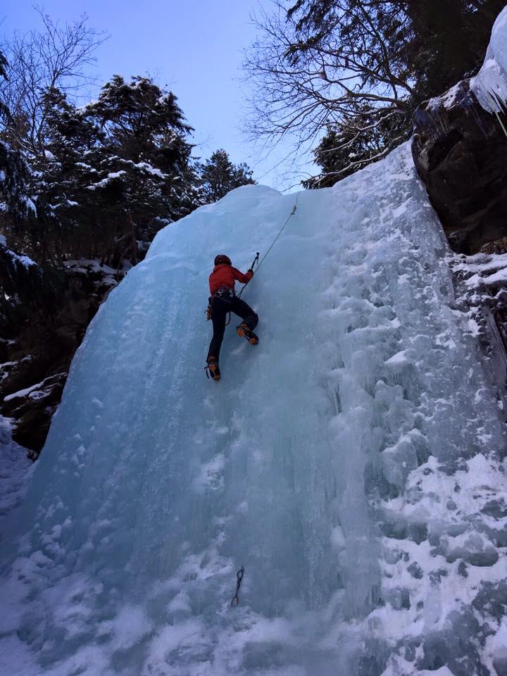 赤岳鉱泉でテント泊し、2日目は南沢小滝でアイスクライミング。