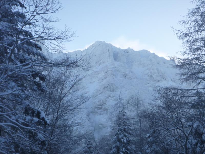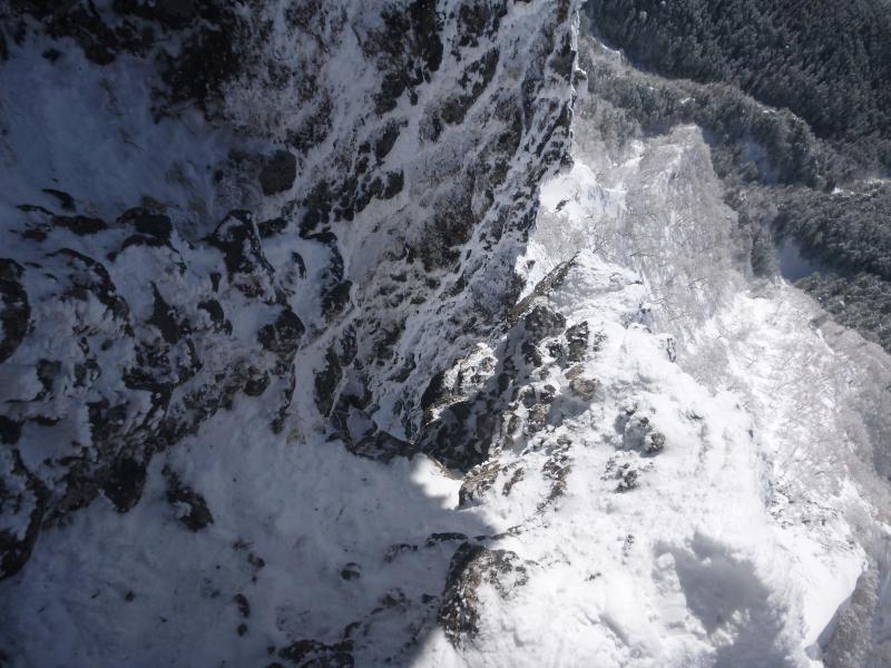 - 前日の降雪のため壁全体に雪がびっしり付着していた。