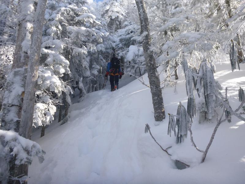 硫黄岳からの下りは上部に雪崩そうな斜面がある以外、特に危険個所はありませんが、意外と長かったです。
