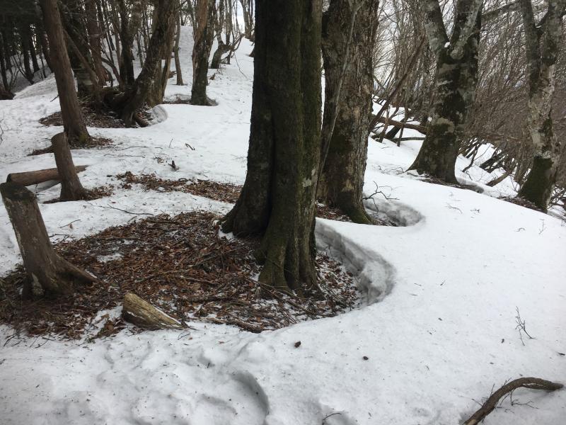 積雪は溶けツリーホールが出現、日射で霧氷も落ちてしまったようです。