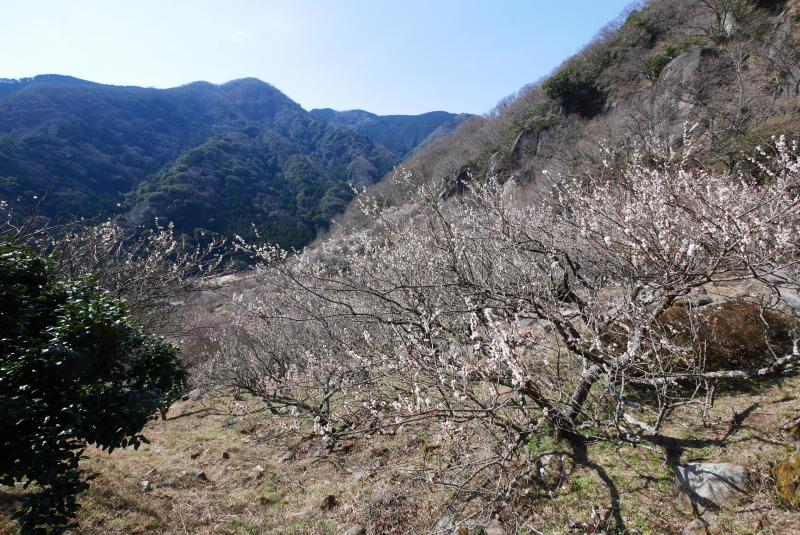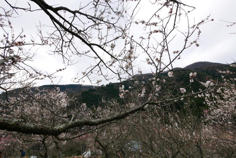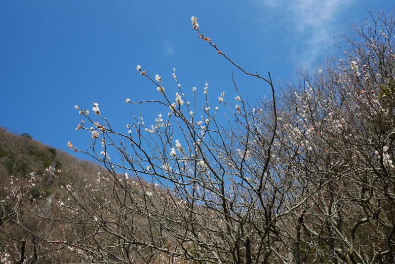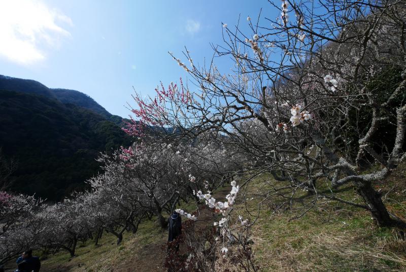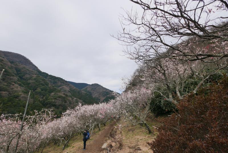 梅というのはその風貌のわりに花が小さく、梅林といってもはじめはぱっとしない印象を受けやすいもので、我々も「なんか渋いね」と言い合っていました。それが午前中は曇り空だったのも影響しているのでしょうが、山頂から帰ってきたらやたらきれいに見えました。太陽が出てきて明るくなったのと、山を歩いてすこし心が素直になっていたからでしょう。山道を歩くとそういう気持ちになることがありますね。