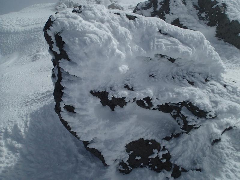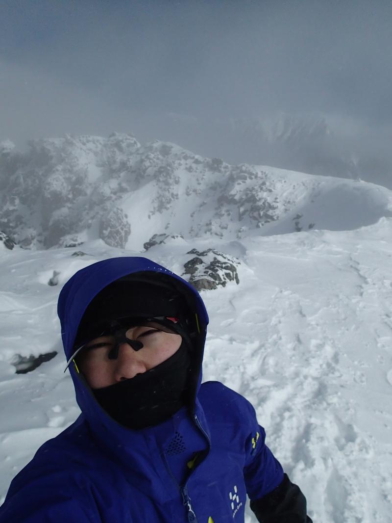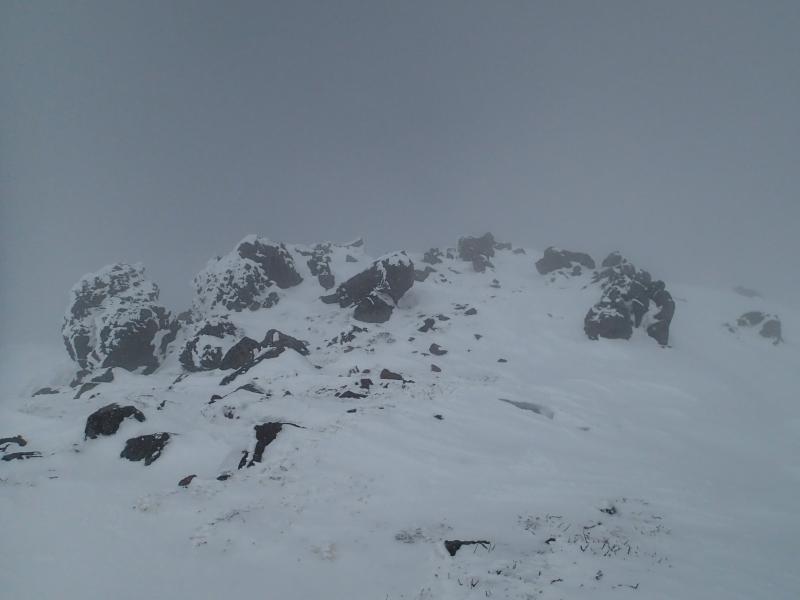 山頂手前200mぐらいからさっきまで雪の斜面だったのが、岩と氷のミックスに変わってきました。