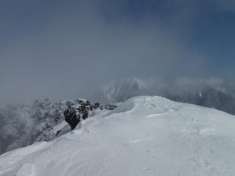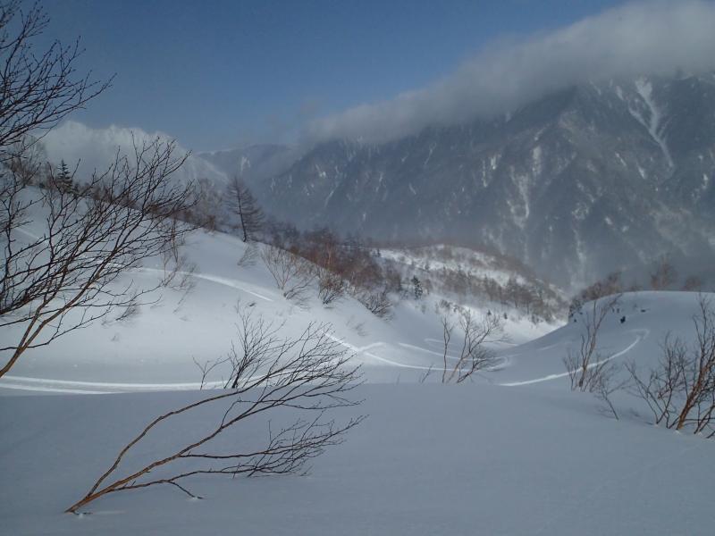 今回デブリは見掛けなかったが谷筋には入らない方が良い。